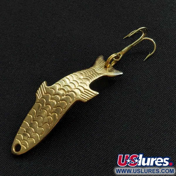 Goudkleurige plating bedekt elke curve van het 4 cm (1 1/2") lange lichaam van deze vintage Acme Phoebe, een ontwerp waar vissers al decennia op vertrouwen. De ingestempelde 'PHOEBE' belettering en de kleinere 'P' op de gladde achterzijde bevestigen de afkomst en getuigen van de productiestandaarden van Amerikaanse origine. Met een gewicht van 4 g (1/8 oz) is dit exemplaar voorzien van gedetailleerde schub- en vingravures die zorgen voor een duidelijk driedimensionaal profiel vanuit verschillende hoeken. Een scherpe dreg is stevig bevestigd met een robuuste goudkleurige splitring, waarbij beide onderdelen hun originele glans hebben behouden. Het bevestigingsoog aan de taps toelopende neus is schoon en perfect gecentreerd voor directe montage of gebruik met een kleine snap. Deze kunstaaslepel, geïdentificeerd met productcode 20604, behoudt een indrukwekkende 5/5 score en toont een oppervlak dat het licht helder reflecteert vanuit elk gestempeld detail. De constructie is geoptimaliseerd voor het werpen en gelijkmatig binnenvissen in diverse wateromstandigheden.