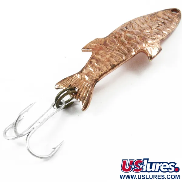 Met een gedetailleerde, schubachtige textuur op een metalen lichaam van 4 cm (1 1/2"), benadrukt de koperen afwerking op dit exemplaar het unieke visvormige silhouet, ontworpen door Blaine Wright. Deze lepel van 4 g (1/8 oz) draagt de erfenis van de Butternut Island Tackle Company, waar Wright het handelsmerk in 1951 voor het eerst registreerde voordat Acme Tackle Co. het patent in 1960 overnam. Gekend onder productcode 3206, heeft het metaal gedetailleerde vinnen en een gebogen profiel dat New York Times-schrijver Peter Kaminsky ooit omschreef als voorzien van markeringen die doen denken aan een paleolithische grotschildering. Op de achterzijde blijft de ingestempelde merknaam leesbaar, ondanks lichte oppervlakkige slijtage door de tijd. Met een conditiescore van 4/5 behoudt het kunstaas zijn originele hardware, inclusief de splitring en dreg. De rijke, warme toon van het metalen lichaam getuigt van de duurzaamheid van Wright's originele Amerikaanse ontwerp uit de jaren 50.