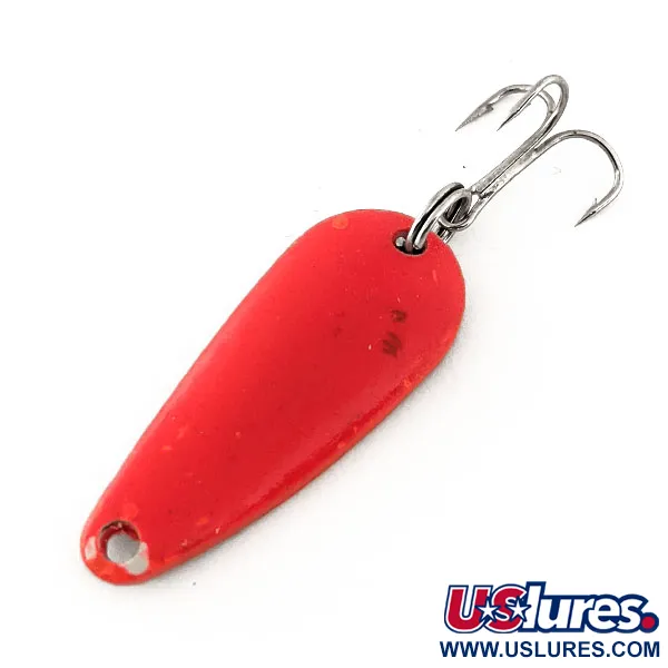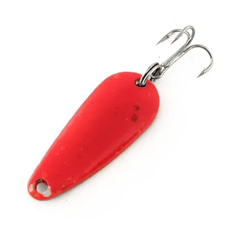 Met een lengte van precies 4 cm (1 1/2") geeft de compacte metalen body van 9 g (1/3 oz) deze Aero UV lepel zijn werpgewicht. De lepel is uitgevoerd in een Roze/Gouden afwerking en heeft een zeer reactief oppervlak dat fel oplicht onder ultraviolet licht (productcode 11490). Dit in de USA vervaardigde kunstaas van Aeroplane Spinner is in 5/5 staat, met een schone, levendige buitenkant zonder slijtage aan de lak of de gepolijste goudkleurige achterzijde. De montage bevat een standaard dreg bevestigd met een splitring, klaar voor gebruik. De druppelvorm zorgt voor stabiliteit tijdens het binnendraaien, terwijl de contrasterende metallic en fluorescerende kleuren zorgen voor zichtbaarheid in verschillende wateromstandigheden.