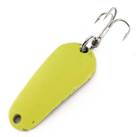 Met een gewicht van 1/4oz (7g) is het compacte profiel van deze in de VS gemaakte lepel gebouwd voor een veelzijdige presentatie in de waterkolom. Aeroplane Spinner heeft de Aero UV ontworpen, bekend onder productcode 11824, met een 1 1/2" (3,7 cm) body afgewerkt in Chartreuse / Goud. Deze fluorescerende coating is specifiek ontwikkeld om te reageren op ultraviolet licht, wat zorgt voor een sterke groene luminescentie voor een hoge zichtbaarheid in omstandigheden met weinig licht. Het beslag bestaat uit een robuuste splitring en een scherpe dreg, waarbij de betrouwbare constructiestandaarden van klassiek Amerikaans visgerei behouden blijven. Met een conditiescore van 5/5 vertoont het kunstaas slechts minimale oppervlakkige sporen op de lak, terwijl de hoogwaardige glans behouden blijft. De druppelvorm en de massief metalen constructie weerspiegelen een functioneel ontwerp bedoeld voor sportvissers die zich richten op vissoorten waarbij kleurattractie een primaire factor is.