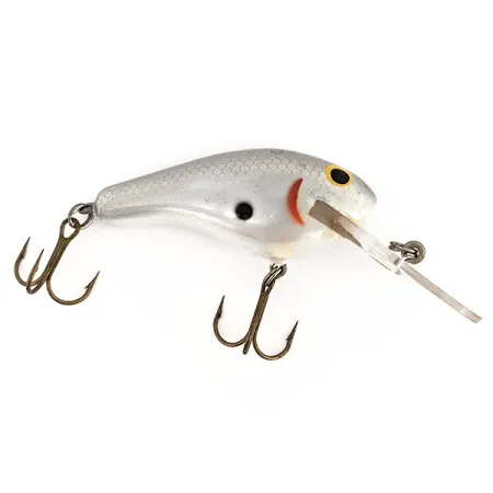 Met een gewicht van 12 g (2/5 oz) benadrukt de balsahouten constructie van deze in Amerika gemaakte plug de hoogwaardige bouwkwaliteit van de Bagley-serie. Het Shad-kleurenschema op deze Bagley b2 is opvallend, met een fijn zilveren schubbenpatroon op de zijkanten, een duidelijke zwarte stip op de flank en een levendige rode kieuwstreep bij de kop. Met een lengte van 6 cm (2 1/4") heeft hij het klassieke druppelprofiel dat dit kunstaas al decennia lang tot een vaste waarde in tackleboxen maakt. Dit specifieke exemplaar, productcode 12789, heeft nog de originele geel geschilderde ogen met zwarte pupillen en een brede transparante duiklip die stevig aan de neus bevestigd blijft. De hardware bestaat uit twee dreg-haken met bronzen afwerking die de ouderdom van het kunstaas sierlijk tonen terwijl ze volledig intact blijven. Met een conditiescore van 5/5 is de laklaag glad en levendig, zonder noemenswaardige slijtage aan het delicate balsahouten lichaam. Dit model is een prachtig voorbeeld van handgemaakt vintage visgerei, ontworpen voor zowel de verzamelaar als voor gebruik op het water.