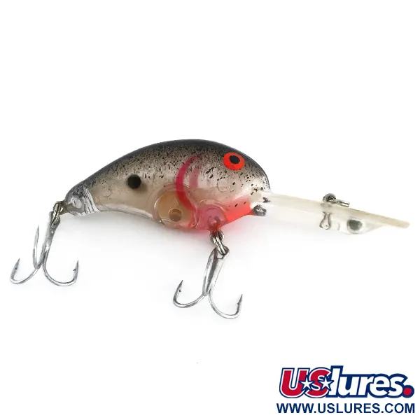Met een gewicht van exact 7 g (1/4 oz) heeft deze compacte crankbait een klassiek, op shad geïnspireerd kleurenschema met een zilvergrijze body en fijne zwarte spikkels op de bovenste helft. Met een lengte van 5 cm (2") is de Bandit 100 (Code 8052) ontworpen als een dieplopende, luidruchtige drijvende plug die dieptes van 0,6–2,6 m (2–8,5 ft) bereikt. De transparante, langwerpige duiklip is het kenmerkende element voor zijn duikvlucht, terwijl de interne ratelkamer een akoestisch element toevoegt voor het vissen op snoek of snoekbaars tijdens het werpen of trollen. Een opvallend rood accent accentueert de keel, aangevuld met grote rood-zwarte ogen die een duidelijk mikpunt vormen voor roofvissen. Vervaardigd in de VS, behoudt dit exemplaar zijn originele fabrieksglans, met een conditiescore van 5/5. Hoogwaardige roestvrijstalen hardware bevestigt de dreggen, zodat het kunstaas direct klaar is voor gebruik.