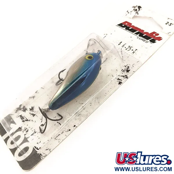 Met een lengte van precies 5 cm (2") is deze ondiep duikende plug een vaste waarde voor het vissen op snoekbaars en snoek. Het kleurenpatroon heeft een metallic blauwe rug die overgaat in schitterende chromen zijkanten, afgewerkt met een felgeel oog voor een klassieke uitstraling. Gewaardeerd met een 6, is het kunstaas ongebruikt en bewaard in de originele verpakking met transparante voorzijde. Het weegt 7 g (1/4 oz) en is ontworpen om te vissen op dieptes tussen 0,6-1,5 m (2-5 ft) tijdens het werpen of trollen. Geproduceerd in Guatemala, draagt deze specifieke Bandit 100 (Productcode 12899) de erfenis van de vroege productie van het merk. De buik en staart zijn voorzien van scherpe zwarte dreggen die geen tekenen van ouderdom vertonen.