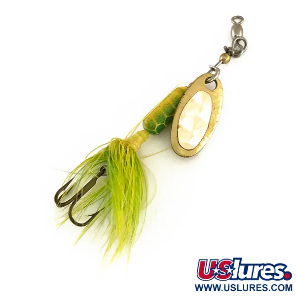 Museumarchief: Luhr Jensen Bang Tail 0 Spinner, Goud/Groen, 3,5g, Verendreg, #7892