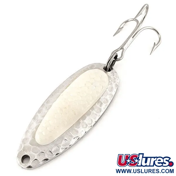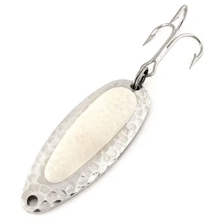 Museumarchief: Blue Fox Pixee Lepel, Gehamerd nikkel / Wit, 14g, Zalmeitje, #12317