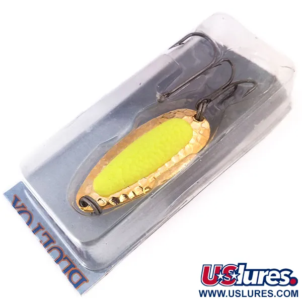 Met een gewicht van 1/2oz (14g) is dit model voorzien van een zware messing body, afgewerkt met een echt 24-karaats vergulde laag. Met een lengte van 5,5cm bevat het ontwerp een felgele imitatie zalmeitje-inzet die dient als mikpunt voor aanbeten. Geïdentificeerd door productcode 10285, is de Blue Fox Pixee UV in ongebruikte staat, bewaard in de originele blisterverpakking. Het kunstaas is verzwaard voor verre worpen en stabiliteit in rivierstromingen, waar het dicht bij de bodem kan tuimelen en rollen. Onder UV-licht of in het donker geeft de inzet een sterke groene gloed af, wat zorgt voor een hoge zichtbaarheid in diep of troebel water. Dit exemplaar is gewaardeerd met een 5/5 voor conditie en vertoont geen gebruikssporen op de vergulding.