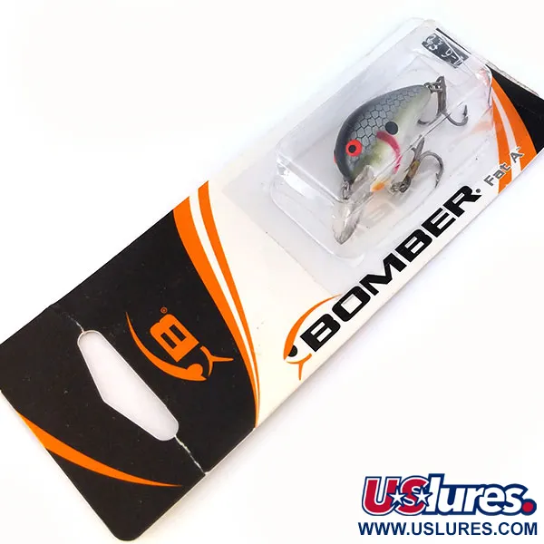 Het B03FTS-kleurenpatroon vertoont een zilveren schubbenafwerking met een levendig rood oog en een kleurrijke rood, wit en gele kieuwmarkering. Met een gewicht van 2 g (1/16 oz) en een lengte van 3 cm (1 1/4") is deze ultralichte Bomber Fat A gebouwd voor het werpen nabij structuren voor baars of kopvoorn. Hij is ontworpen om dieptes van 1,2 - 1,8 m te bereiken terwijl hij bij een pauze blijft drijven. Dit exemplaar, geïdentificeerd door productcode 10665, is geassembleerd in Mexico en verkeert in ongebruikte staat, bewaard in de originele winkelverpakking. De hardware omvat twee dreggen und een transparante, geïntegreerde duiklip.