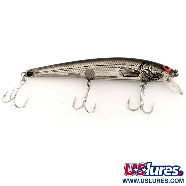 Een reflecterende Mirror-afwerking geeft dit exemplaar een opvallende uitstraling en vangt de essentie van de klassieke chroom-esthetiek van Bomber. Met een gewicht van 14 g (1/2 oz) en een lengte van 12 cm (4 3/4") is de Bomber Long A15A een veelzijdige suspender, geregistreerd onder productcode 12016. Dit model is ontworpen om te vissen op dieptes van 1,2 tot 1,8 m (3,9-5,9 ft) en is voorzien van een intern ratelsysteem voor geluidsattractie tijdens zowel werpen als trollen. Het zilveren lichaam wordt gecomplementeerd door een donkere rug en gedetailleerde kieuwlijnen, gecombineerd met opvallende rode ogen bij de heldere duiklip. Beoordeeld met een 5/5 voor conditie, blijven de buitenkant en het hardware uitzonderlijk goed bewaard, wat de kwaliteit van de Amerikaanse herkomst onderstreept. Drie stevige dregghaken zijn gemonteerd op de buik en staart, klaar voor gebruik in het water of voor een verzamelaarsdisplay.