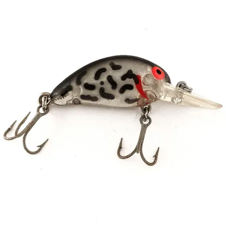 Met een gewicht van precies 1/4oz (7g) is deze compacte crankbait een perfect voorbeeld van het vakmanschap dat Bomber tot een begrip maakte in de Amerikaanse kunstaasindustrie. Dit exemplaar van 1 3/4" (4,5 cm), herkenbaar aan productcode 12519, heeft een doorschijnend rookzilverkleurig lichaam versierd met opvallende zwarte luipaardvlekken en subtiele rode kieuwstrepen. Ontworpen als drijvend kunstaas, maakt het gebruik van een heldere, ronde duiklip om dieptes tussen 0,9-2,1m (3-7ft) te bereiken, wat een klassiek bereik is voor het vissen op actieve snoekbaars of snoek. Het visuele profiel wordt geaccentueerd door kenmerkende rode ogen met zwarte pupillen, een eigenschap waar verzamelaars vaak naar zoeken in vroege plastic Bomber-modellen. De hardware is in 5/5 conditie, voorzien van twee scherpe dreggen en een stevige splitring. Oorspronkelijk afkomstig uit de VS, hielp de Model B-serie de moderne categorie van ondiep tot middeldiep duikende crankbaits te definiëren door zijn duurzame gegoten vorm.