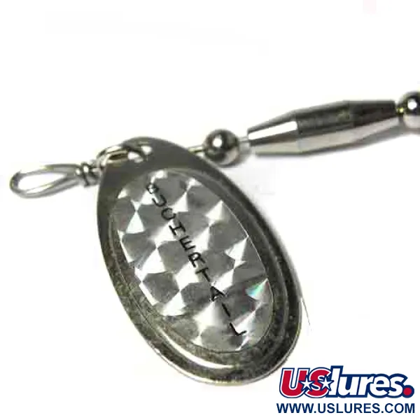 Vernikkelde bladen met een duidelijk holografisch schubbenpatroon kenmerken deze Buchertail 500 als een klassieke middelgrote inline spinner. Met een gewicht van 17 g (3/5 oz) is dit ontwerp van Joe Bucher voorzien van een verzwaarde body van zilverkleurige metalen kralen die het nodige ballast bieden voor verre worpen naar plantenbedden of boven gezonken hout. De dikke zwarte bucktail is vastgezet met een opvallende rode draadwikkeling, die dient als visueel richtpunt vlak voor de achterste dreg. Dit exemplaar, met productcode 0017, toont de robuuste Amerikaanse constructie die typerend is voor de reputatie van het merk bij het vissen op trofee-snoek en musky. De reflecterende hologramsticker op het blad is nog steeds levendig, ontworpen voor maximale schittering in verschillende watercondities. Wat de fysieke staat betreft, heeft het kunstaas een conditiescore van 4/5 en is het schoon en goed onderhouden. Het is voorzien van een heavy-duty oogje voor een veilige bevestiging van de onderlijn, een kenmerk van de eenvoudige, effectieve hardware waar Joe Bucher om bekend staat.