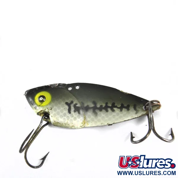 Met een gewicht van 12,5 g (2/5 oz) is deze metalen blade bait voorzien van twee verschillende bevestigingsogen waarmee een visser de weerstand tijdens het binnenvissen kan aanpassen aan de diepte. De Cotton Cordell Gay Blade, productcode 0992, heeft een baarskleurpatroon met een opvallend rood vlak op de kop. Met een lengte van 5 cm (2") heeft het ontwerp een platte kopsectie die bedoeld is om een constante trilling te veroorzaken bij het verplaatsen van water tijdens het werpen of trollen. Geproduceerd in de VS, verkeert het kunstaas in een 4/5 conditie, met een schone afwerking en slechts subtiele ouderdomssporen die het vintage karakter benadrukken. De twee dreggen zijn stevig bevestigd aan de buik en de staart. Door het bevestigingspunt naar de voorkant te verplaatsen, is een hogere inhaalsnelheid met minder weerstand mogelijk.