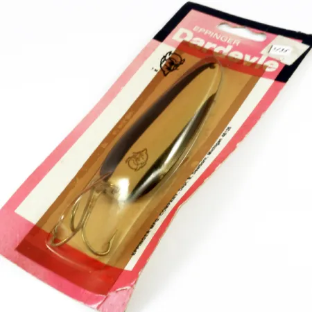 Met een gewicht van een substantiële 28g (1oz) is deze zware lepel ontworpen voor verre worpen en presentaties in diep water. De Eppinger Dardevle, met productcode 3135, heeft een lengte van 9 cm (3 1/2") en is voorzien van het iconische gestempelde duivelskoplogo op het metalen oppervlak. Dit specifieke exemplaar is uitgevoerd in Zwart / Wit / Nikkel, gepresenteerd in de originele vintage winkelverpakking met een roze-witte kaart die het productietijdperk in Dearborn, Michigan weerspiegelt. Het kunstaas is ongebruikt en heeft een conditiescore van 6. Uitgerust met een grote, in de fabriek gemonteerde dreg, is het vervaardigd met de gepatenteerde matrijzen die Lou Eppinger meer dan een eeuw geleden perfectioneerde. De achterkant van de kaart vermeldt het adres van de Eppinger Manufacturing Company aan Schaefer Highway, een belangrijk detail voor verzamelaars van in Michigan gemaakt materiaal. De zware metalen constructie zorgt ervoor dat het kunstaas diep in de strike zone blijft tijdens een binnenvissen in een constant tempo.