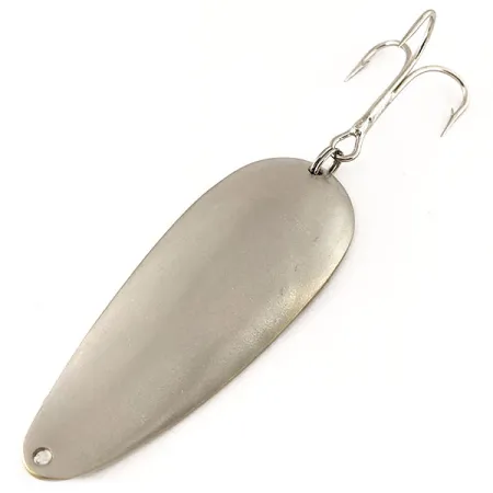 Deze lepel is gestempeld met de kenmerkende identificaties "DARDEVLET", "DETROIT" en "USA" op de holle zijde en is een prachtig stukje hengelsportgeschiedenis van de firma Eppinger. Dit exemplaar in Mat zilver, met productcode 12261, heeft een lengte van 7 cm (2 3/4") en weegt 21 g (3/4 oz), waardoor het een uitstekende keuze is voor het bereiken van dieper gelegen doelen. De strakke, niet-reflecterende afwerking zorgt voor een gespecialiseerde aasaanbieding vergeleken met hoogglansmodellen, ideaal voor helder water. Het kunstaas verkeert in opmerkelijke staat (score 5/5) met een consistent oppervlak en een sterke dreg. Hoewel Eppinger de productie in 1959 naar Dearborn verplaatste, worden deze in Detroit gestempelde lepels zeer gewaardeerd door verzamelaars vanwege hun historische band met de oorspronkelijke wortels van Lou Eppinger in Michigan. De druppelvorm en de specifieke gewichtsverdeling zijn ontworpen voor effectieve werp- en sleeptrechnieken.