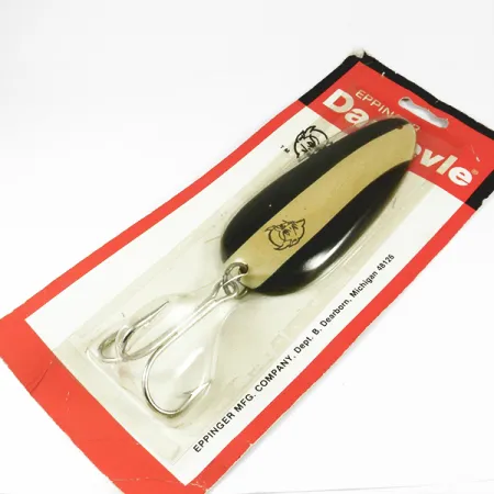 Met een gewicht van 58 g (2 oz) heeft deze substantiële Huskie Junior-variant van de legendarische Dardevle-lepel voldoende massa om diep levende snoek en musky te bereiken. De wortels van Eppinger in Dearborn, Michigan, zijn zichtbaar op de vintage verpakking, met de klassieke rood-witte graphics die het bedrijf al decennia gebruikt. Het Black / White / Nickel-kleurenschema biedt een gestreept patroon met hoog contrast op de bolle zijde, gecombineerd met het iconische duivelskoplogo dat rechtstreeks in het metaal is gestempeld. Met een lengte van 11,5 cm (4 1/2") weerspiegelt het gestanste lichaam de specifieke geometrie die Eppinger heeft ontwikkeld om een duidelijke actie te creëren zonder extra gewichten. Dit exemplaar, met productcode 3537, is ongebruikt in de originele blisterverpakking, waardoor de heldere nikkelafwerking op de holle zijde en de scherpe, heavy-duty dreg behouden zijn gebleven. De verpakking vermeldt de aanduiding Huskie Junior, een maat die specifiek is ontworpen voor grotere roofvissen in groot water. Op de achterzijde biedt het originele label van de Eppinger Mfg. Company historische context aan het fabricagetijdperk in Dearborn.