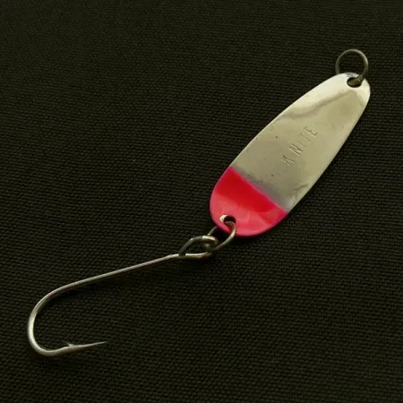 Met een gewicht van slechts 1 g (1/32 oz) is dit exemplaar voorzien van de kenmerkende nikkelen en rode afwerking die deze lepels al decennia lang tot een vaste waarde in de Pacific Northwest maakt. Met een lengte van exact 2,5 cm (1") is het slanke blad duidelijk voorzien van de fabrieksnaam, gestempeld in het reflecterende metaal. Het onderste derde deel van de lepel is bedekt met een levendig rood pigment, wat een scherp visueel contrast vormt met de glanzende nikkelen body. Dit kunstaas, geïdentificeerd door productcode 23603, is uitgerust met een enkele, wijdgaapse haak bevestigd aan een stevige splitring; een montage die geliefd is vanwege de efficiëntie bij het trollen of werpen op forel en kokanee. Deze klassieker van Amerikaanse makelij verkeert in topconditie (score 5/5), met een schoon oppervlak en strakke laklijnen. De bovenste splitring is stevig bevestigd en klaar voor gebruik met een lichte uitrusting.