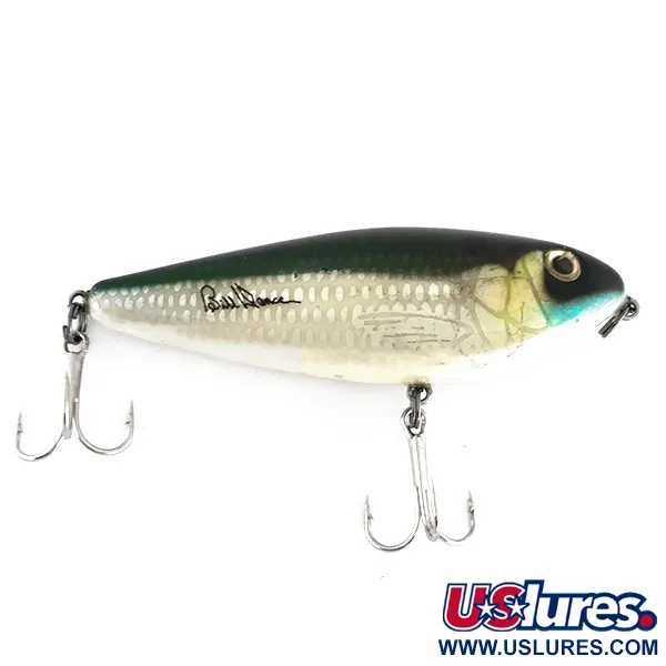 Een kenmerkend handschrift van "Bill Dance" siert de zilveren schubzijde van deze Heddon-klassieker uit de Excalibur-serie. Met een lengte van 7 cm (2 3/4") en een gewicht van 10 g (1/3 oz), toont dit kunstaas een realistisch profiel van een prooivis met een diepgroene rug en een getextureerd zilveren netpatroon op de flanken. Een zacht blauw accent onder de kin vult de gouden ogen en de crèmekleurige buik aan. Ontworpen als een ratelend oppervlakte-kunstaas, kan het tijdens het binnenvissen dieptes van 0,5 m (1,6 ft) bereiken. Dit specifieke exemplaar, met productcode 8055, verkeert in uitstekende 5/5 conditie. Gemaakt in de VS, is het lichaam uitgerust met twee scherpe dreggen voor een effectieve inhaking. De interne ratelkamers zorgen voor een specifieke akoestische aanwezigheid terwijl het kunstaas over het water wordt gevist.