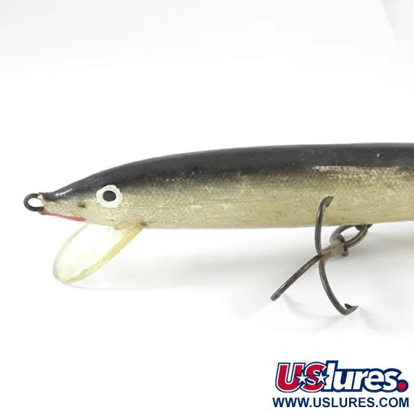 Met een lengte van 15 cm (6") belichaamt deze houten minnow-plug uit Finland de vroege ontwerpprincipes van het midden van de jaren zestig. Geproduceerd door Finlandia Uistin rond 1963-1965, heeft de body een natuurlijk kleurenpalet met een donkere rug die overgaat in goud-zilveren schubben op de flanken. Kenmerkend voor de historie zijn de zichtbare tandafdrukken aan de zijkanten, het bewijs van de vangkracht op het water en de reden voor de 3/5 conditiescore. Met een gewicht van 8 g (1/4 oz) is het slanke profiel uitgerust met twee dreggen en een heldere zwemlip, gecategoriseerd onder productcode 1302. De bouwwijze weerspiegelt de overgang van handgemaakt kunstaas naar gestandaardiseerde productie in de Scandinavische regio in die tijd.