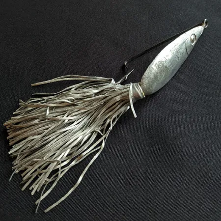 Zilveren afwerkingen bepalen de esthetiek van dit vintage exemplaar, dat is voorzien van een prominente "Hawaiian" stempel op het metalen oppervlak. Met een gewicht van 3/5oz (16g) is de Fred Arbogast Hawaiian #3, herkenbaar aan productcode 20096, een substantieel kunstaas gebouwd voor het vissen in dichte begroeiing. Het lichaam heeft een lengte van 2 1/4" (6cm) en beschikt over een vaste enkele haak die wordt beschermd door een stevige metalen weedguard. Een dikke, zilverkleurige skirt geeft het profiel aanzienlijk volume en is stevig verankerd achter de druppelvormige metalen kop. Dit kunstaas komt uit de USA en vertoont lichte sporen van zijn geschiedenis, maar verkeert in een goed onderhouden 4/5 staat, waarbij de ingestempelde naam van de fabrikant nog duidelijk leesbaar is. Het oog wordt gevormd door een eenvoudige reliëfcirkel op de kop, een kenmerk van het Arbogast-ontwerp uit het midden van de vorige eeuw. De robuuste hardware weerspiegelt de traditionele focus van het merk op duurzaamheid en functionaliteit voor baarsvissers.