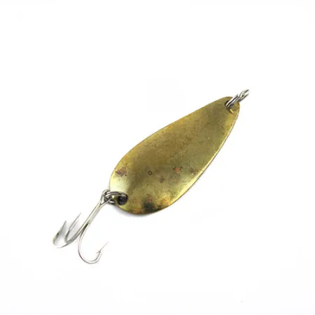 De messing constructie bepaalt de esthetiek van dit exemplaar en zorgt voor een warme metaalglans die door de jaren heen is gerijpt. Met een gewicht van 7,7 g (1/4 oz) is de Gypsy King S 0 een klassieke Amerikaanse lepel van Weller, herkenbaar aan productcode 0621. Het druppelvormige profiel heeft een lengte van 4,5 cm (1 3/4"), waardoor het een veelzijdige keuze is voor verschillende lichte visserijomstandigheden. Dit specifieke kunstaas vertoont zichtbare oppervlakkige slijtage en sporen die overeenkomen met een conditiescore van 3/5. Het blijft functioneel met zijn montage, inclusief een bovenste splitring voor lijnbevestiging en een achteraan gemonteerde dreg. Het massieve metalen lichaam zorgt voor een consistente gewichtsverdeling om grote afstanden te bereiken tijdens het werpen.
