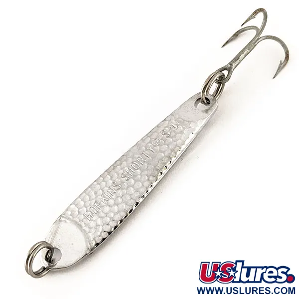Een gehamerde nikkelafwerking definieert het visuele profiel van deze klassieke jigging lepel, met een gewafelde textuur die ontworpen is om licht vanuit meerdere hoeken te vangen en te reflecteren. Met een compacte lengte van 4,5 cm (1 3/4") en een gewicht van 9 g (1/3 oz), is deze Hopkins Shorty S1 een veelzijdige keuze voor verticale presentaties of werpend vissen. Het lichaam is duidelijk gestempeld met de fabrikantnaam en het model, en is gecatalogiseerd onder productcode 12423. Vervaardigd in de USA, wordt de massieve metalen constructie gecombineerd met een scherpe dreg en zware splitringen aan beide uiteinden. Dit exemplaar verkeert in 5/5 conditie en heeft een helder, schoon oppervlak dat de originele glans van de vernikkeling op het gesmede lichaam benadrukt. Het compacte ontwerp van dit model is specifiek ontwikkeld om snel diepte te bereiken bij het vissen op soorten in diepere waterlagen.