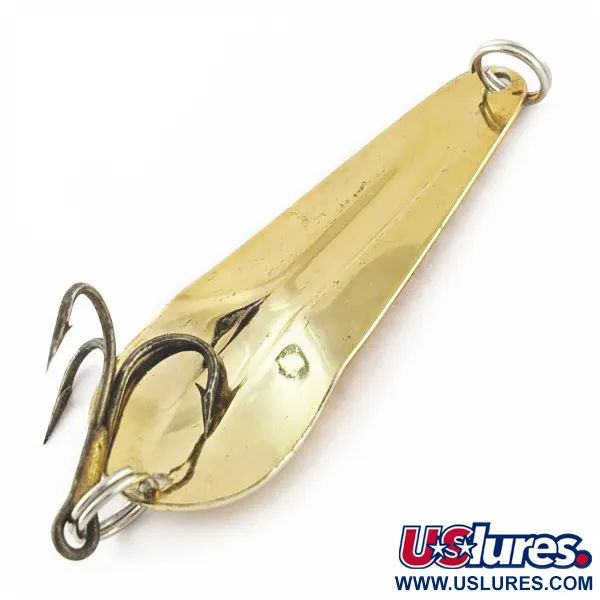 Met een lengte van 7 cm (2 3/4") biedt het druppelvormige lichaam van deze gouden lepel een klassiek profiel voor het werpen in zoet water. Een gewicht van 12 g (2/5 oz) zorgt voor veelzijdigheid op verschillende dieptes. In de concave binnenzijde is de naam Haver gestanst, wat de oorsprong van het ontwerp door Percy Haver in de vroege jaren 30 weerspiegelt. De vergulde afwerking van deze James Aitken productie is nog steeds schoon en reflecteert het licht effectief. Productcode 24473 is bewaard gebleven in 5/5 conditie, wat de verfijnde stansing en gladde randen toont die van deze fabrikant worden verwacht. De zware achterkant en smalle neus zorgen voor de traditionele gewichtsverdeling die kenmerkend is voor die tijd.