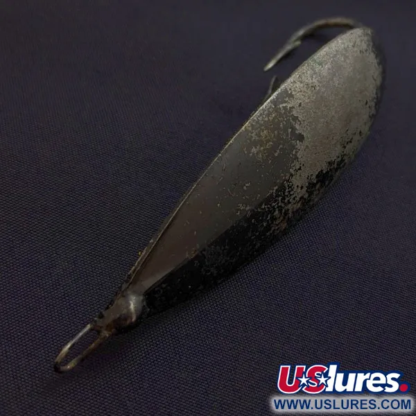 Met een gewicht van 3/4 oz (21 g) maakt het zware profiel van deze wierloze lepel precisieworpen in dikke lelievelden of dicht riet mogelijk. De druppelvorm van 2 3/4" (7 cm) is in het midden dikker gesmeed, een ontwerpkeuze die bedoeld is om de haak rechtop te houden tijdens het binnenvissen. Afgewerkt in matzwart met een conditie van 4/5, toont het metaal de eerlijke slijtage van gereedschap dat gebouwd is voor zware begroeiing. Een enkele vaste haak wordt afgeschermd door een verende metalen wierbeschermer, waardoor vastlopers tijdens het vissen op baars of snoek in de planten tot een minimum worden beperkt. Met productcode 24489 vertegenwoordigt deze specifieke lepel het tijdperk van binnenlandse productie in de USA. De zwarte afwerking zorgt voor een duidelijk silhouet, waardoor het een betrouwbare keuze is voor troebel water waar een contrastrijk profiel vereist is.