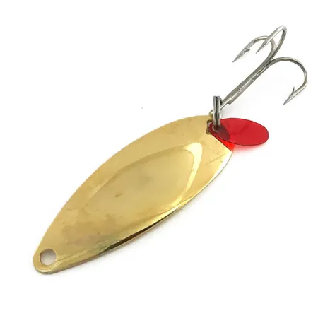 Met een lengte van 5 cm (2") heeft deze lepel een schitterende Gold afwerking die bijzonder helder blijft. Aan de holle zijde bevestigt het "JOHNSON'S SPRITE" stempel zijn herkomst uit de USA, een detail dat verzamelaars vaak verkiezen boven de latere Chinese productie. Dit 7 g (1/4 oz) model, herkenbaar aan productcode 9323, is voorzien van het originele beslag, inclusief een zilveren dreg en het kenmerkende rode plastic teaser-vlaggetje aan de achterste splitring. De staat van dit exemplaar is 5/5, met een spiegelglad oppervlak en een schone, scherpe haak.
