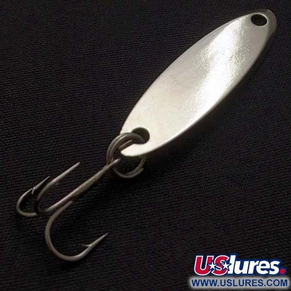 Een massieve nikkelafwerking bedekt deze 3,5 cm (1 1/2") metalen lepel en zorgt voor een hoge zichtbaarheid waar vissers al decennia op vertrouwen. Op de voorzijde staat duidelijk 'KASTMASTER ACME TACKLE CO.' gestanst, een bewijs van authenticiteit voor dit product met code 24448. Met een gewicht van precies 3,5 g (1/8 oz) wordt het aerodynamische profiel bereikt door een kenmerkende precisiegesneden schuine kant, ontworpen om te passen bij de eigenschappen van de gespecialiseerde metaallegering van Acme. Het hang- en sluitwerk is van topkwaliteit, met een robuuste splitring en een scherpe, zilverkleurige dreg. Het oppervlak is glanzend en vrij van beschadigingen, wat een conditiescore van 5/5 verdient. Dit formaat is bijzonder effectief bij het vissen op forel of baars wanneer een kleiner profiel nodig is om de natuurlijke prooi te imiteren. De hoge dichtheid maakt presentaties in diep water of verre worpen vanaf de kant mogelijk. Het eenvoudige maar effectieve ontwerp zorgt ervoor dat dit een standaard blijft voor diverse werp- of jigtechnieken.