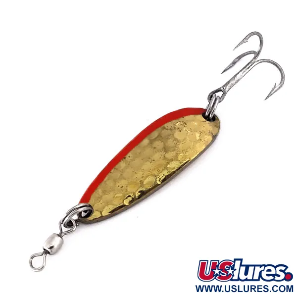 Museumarchief: Luhr Jensen Krocodile Lepel, Gehamerd messing/Oranje, 9g, #10184