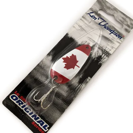 Het patriottische rood-witte vlagpatroon identificeert deze 5 cm (2") lepel onmiddellijk als een klassieker uit het Len Thompson-assortiment. Met een gewicht van 14 g (1/2 oz) is dit #00-model ontworpen voor een langzame, waggelende actie, een kenmerkende technische eigenschap die het merk sinds de oprichting in 1929 in Lacombe, Alberta, definieert. Dit exemplaar behoort tot de Original Series en draagt productcode 12062. De uitvoering is voorzien van een robuuste dreg die is bevestigd via een stevige splitring, wat de toewijding aan duurzaamheid van de Thompson-Pallister Bait Co. Ltd. weerspiegelt. De lepel wordt gepresenteerd in de originele verpakking en aangezien hij ongebruikt is, verkeert het kunstaas in onberispelijke staat, beoordeeld met 5/5. Verzamelaars zullen het duidelijke "Len Thompson"-schrift op de kaart waarderen, dat verwijst naar de legendarische prestaties die deze in Canada gemaakte lepels tot een favoriet hebben gemaakt voor de visserij op snoek, meerforel en zalm in de Noord-Amerikaanse wateren. Werpen of trollen met zulk nauwkeurig gebalanceerd kunstaas zorgt voor optimale technische controle tijdens het binnenvissen.