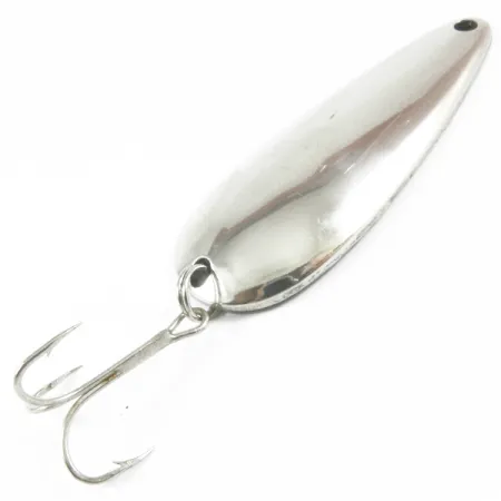 Een glanzende nikkelen afwerking kenmerkt het klassieke profiel van deze 21 g (3/4 oz) werplepel, een basisuitrusting voor vissers sinds de oprichting van het merk in 1929. Met een lengte van 7 cm (2 3/4") heeft de Len Thompson #1 een zware body die ontworpen is voor duurzaamheid tegen de scherpe tanden van snoek. De concave achterzijde is duidelijk gestempeld met het makersmerk "LEN THOMPSON NO. 1", wat de status bevestigt onder verzamelaars van Canadees visgerei. Dit exemplaar verkeert in 5/5 staat, met een helder reflecterend oppervlak en stevig beslag. Bevestigd via een sterke splitring, is de dreg uitermate geschikt voor trollen of werpen op meerforel en zalm. Bekend om zijn trage, waggelende actie die een stabiele aasvis nabootst, is deze specifieke nikkelen variatie geregistreerd onder productcode 3531.
