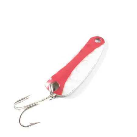 Gehamerde putjes met een messing afwerking sieren de achterzijde van deze 14g (1/2oz) lepel, wat hem identificeert als een authentiek stuk Canadese hengelsportgeschiedenis. Met een lengte van 5cm (2") is het kunstaas aan de voorzijde voorzien van het klassieke Rood/Witte streeppatroon, een kleurenschema dat al lang geliefd is om zijn zichtbaarheid. Op de achterkant zijn het merkteken van de fabrikant en het modelnummer 11 duidelijk gestempeld, wat duidt op de herkomst uit de werkplaats van Len Thompson. Sinds 1929 staan deze lepels bekend om hun balans, specifiek ontwikkeld voor een langzaam waggelende actie tijdens het binnenvissen of trollen. De dreg is stevig bevestigd via een splitring, wat getuigt van de duurzaamheid die verwacht wordt van gereedschap dat ontworpen is voor sterke snoek en meerforel. Dit exemplaar verkeert in 4/5 conditie, met goed onderhouden oppervlakken die het licht weerkaatsen op het gestructureerde messing. Vissers hebben vaak succes met dit gewicht bij het werpen in diepere gaten of het op diepte blijven tijdens het trollen op zalm. De productcode voor dit specifieke item is 1747.