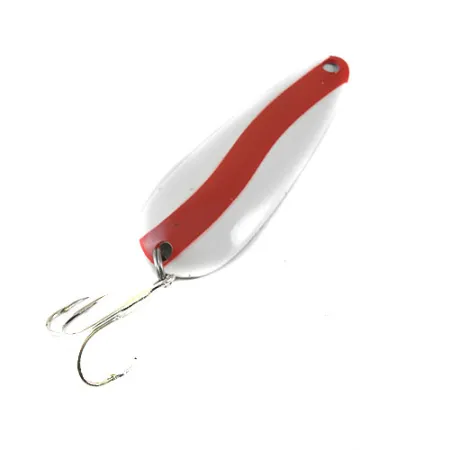 Met een aanzienlijk gewicht van 28g (1oz) voelt deze lepel solide aan in de hand, een kenmerk van de hoogwaardige Canadese productie die Len Thompson sinds 1929 hanteert. De lepel is 8cm (3 1/4") lang en is uitgevoerd in het contrastrijke Rood / Wit kleurenpatroon, een afwerking ontworpen voor maximale zichtbaarheid in diverse wateromstandigheden. Aan de achterzijde is het gestanste messing zichtbaar, een eigenschap die de specifieke dichtheid biedt die nodig is om diepere waterlagen te bereiken tijdens het trollen of werpen. Dit exemplaar, met productcode 0739, heeft een conditiescore van 4/5 en behoudt zijn levendige emaille met slechts minimale sporen van verblijf in de tacklebox van een verzamelaar. De hardware is nog steeds robuust, voorzien van een sterke dreg bevestigd aan een stevige splitring, klaar voor de jacht op snoek, zalm of meerforel. Elke curve van het messing blad is ontworpen om het silhouet van een aasvis na te bootsen met behoud van de balans waar sportvissers al bijna een eeuw op vertrouwen.