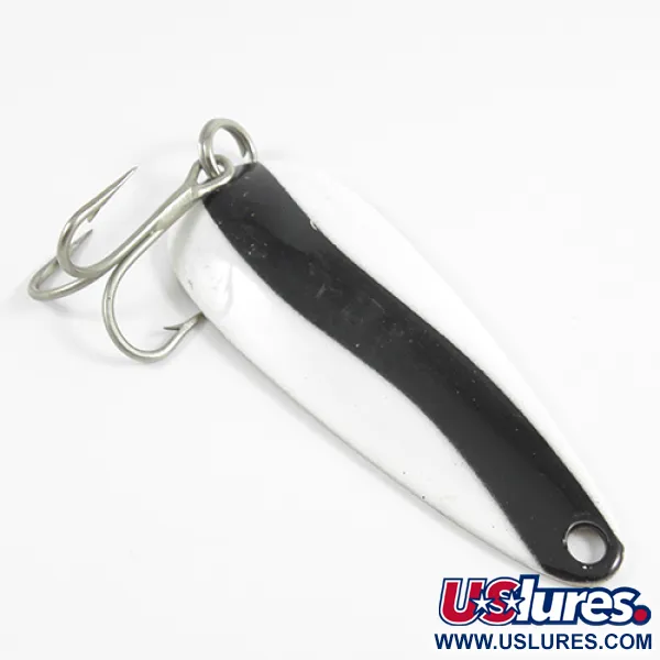 Duidelijk gestempeld op de messingkleurige onderkant, identificeert het merk "LEN THOMPSON NO 2" de herkomst van deze 28g (1oz) Canadese klassieker. Met een lengte van 8 cm (3 1/4") heeft deze lepel een contrastrijk zwart-wit kleurenschema op de bolle zijde, gecombineerd met een gepolijste messing achterkant. Dit specifieke exemplaar, gecatalogiseerd onder productcode 2518, verkeert in 5/5 conditie met schone oppervlakken en scherpe randen op het metalen lichaam. Dit kunstaas wordt al sinds 1929 geproduceerd en wordt gewaardeerd om een uitgebalanceerde bouw die een langzame, waggelende actie mogelijk maakt tijdens een gelijkmatige inhaalbeweging. Het hang- en sluitwerk is robuust, voorzien van een zilverkleurige dreg en een sterke splitring aan de staart. Of het nu bedoeld is voor een verzameling of een dag op het water voor snoek of zalm, het vakmanschap van dit kunstaas is duidelijk zichtbaar in de gladde afwerking en nauwkeurige stempeling.