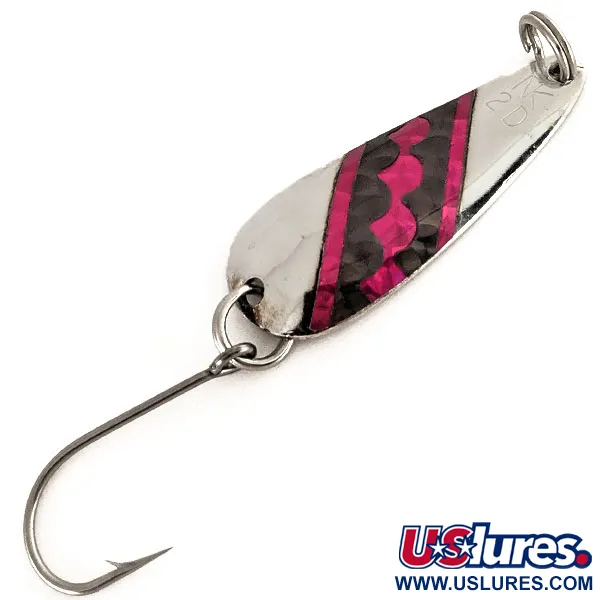 Met een gewicht van 11 g (2/5 oz) heeft deze messing lepel het klassieke Northern King-profiel dat voor het eerst in 1984 op de markt kwam. Het Nikkel / Rood kleurenpatroon is aangebracht op een hoogwaardige messing body, met een zilverkleurige afwerking die is ontworpen voor zichtbaarheid in dieper water. Met een lengte van 5,5 cm (2 1/4") draagt dit exemplaar productcode 12484 en vertegenwoordigt het Len Thompsons Canadese productietraditie. Dit specifieke kunstaas verkeert in 5/5 staat en vertoont geen tekenen van slijtage op de gepolijste oppervlakken of de enkele haak. Sportvissers gebruiken deze lepels vaak bij het trollen op zalm, steelhead of meerforel, waarbij ze vertrouwen op het zware messing om de gewenste diepte te bereiken. De voorzijde van de lepel is gestempeld met de aanduiding NK 2 D, terwijl de achterzijde is afgewerkt met een strakke, reflecterende verzilvering.