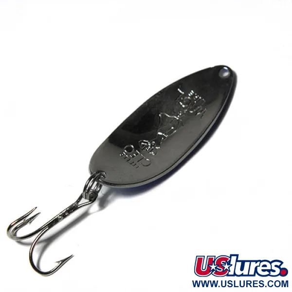 Een wit parelmoer dat overvloeit in een levendig blauw zorgt ervoor dat deze specifieke lepel opvalt in elke tacklebox. Met een gewicht van 1/2 oz (14 g) draagt deze 2 1/4" (5,5 cm) Seneca Little Cleo (Hula Girl) het iconische danseres-embleem op de achterkant, een detail waarvan puristen weten dat het verloren ging nadat het merk begin jaren '80 naar Acme overging. Verzamelaars jagen vaak op deze originele Seneca-exemplaren vanwege de 'Hula Girl'-legende, in de overtuiging dat de ingestempelde figuur net dat beetje extra geluk op het water bracht. Dit exemplaar, toegewezen aan productcode 0274, verkeert in uitstekende 5/5 conditie en toont het strakke Amerikaanse vakmanschap en de originele hardware. De kenmerkende vorm en het gewicht van de lepel zijn ontworpen voor het werpen of trollen, hier gecombineerd met een scherpe dreg die is bevestigd met een stevige splitring. Elke curve van de gepolijste metalen body reflecteert licht door de parelmoerlak, waarbij de hoge kwaliteit behouden blijft die verwacht mag worden van een vintage in New York gemaakt Seneca-kunstaas.