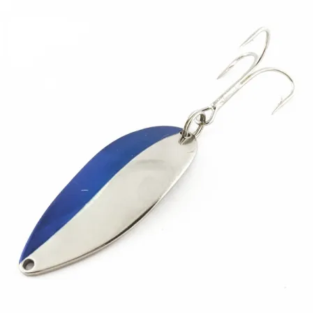 Met een gewicht van 21g (3/4oz) heeft dit exemplaar de degelijke uitstraling van een zware werplepel. De afwerking in nikkel en blauw is opvallend gaaf en toont het hoogwaardige planswerk dat typerend was voor de Seneca Lure Company voordat zij begin jaren '80 werden overgenomen door Acme. Wanneer je de body van 6,5 cm (2 1/2") omdraait, zie je de kenmerkende 'Hula Girl' stempel op de achterzijde, een detail waarvan veel ervaren verzamelaars geloven dat het de Little Cleo zijn legendarische reputatie gaf. Dit specifieke model, met productcode 24198, is voorzien van de originele onderdelen, waaronder de stevige dreg en splitring. De gestempelde details zijn een keurmerk voor dit vroege kunstaas van Amerikaanse makelij, aangezien moderne versies van Acme de dansende figuur niet meer bevatten. Een exemplaar vinden in conditie 5/5 zoals dit is een buitenkans voor liefhebbers van de overgangsjaren in de Amerikaanse hengelsportproductie. De blauwe lak beslaat de helft van de bolle kant, wat een scherp contrast vormt met het gepolijste nikkelen oppervlak.