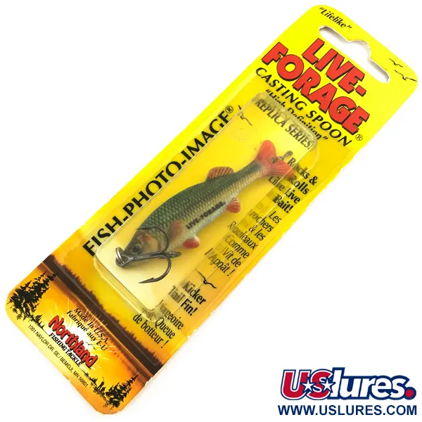 Een zeer gedetailleerde, fotorealistische „regenboogvis”-afwerking kenmerkt dit exemplaar, waarbij gebruik wordt gemaakt van Northlands Fish-Photo-Image-technologie om natuurlijke prooisoorten na te bootsen. Deze lepel van 7 g (1/4 oz) uit de Live Forage Replica-serie is 6 cm (2 1/4") lang en is ontworpen voor het werpen of trollen op vissoorten zoals glasbaars, baars en snoek. Het kunstaas met productcode 5140 heeft een gestempelde messing body die voor een duidelijke schittering zorgt, terwijl een „Kicker Tail Fin” het visuele profiel versterkt. Omdat dit item de staat 6 heeft, is het ongebruikt in de originele blisterverpakking gebleven, waardoor de glow-in-the-dark eigenschappen uit de technische specificaties behouden zijn gebleven. De montage omvat een enkele grote dreg aan de onderkant van de lepel.