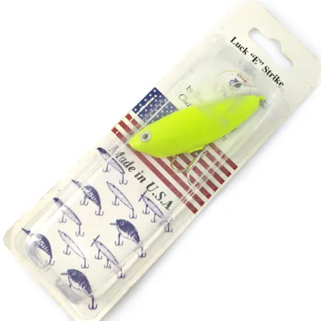 Met een gewicht van 7g (1/4oz) is dit felgele oppervlaktekunstaas een goed bewaard gebleven exemplaar uit de Rogers-lijn geproduceerd door Luck E Strike. Met een lengte van 5,5cm (2 1/4") is de popper voorzien van een solide, goed zichtbare afwerking over het hele profiel, ontworpen voor oppervlaktevistechnieken. Dit specifieke item, geïdentificeerd door productcode 21309, zit nog in de originele fabrieksverpakking, wat de 'Made in U.S.A.'-oorsprong in Cassville, Missouri benadrukt. De achterkant van de kaart bevat distributiegegevens voor KEN international inc., wat interessante context biedt voor verzamelaars van de geschiedenis van export-hengelsportmateriaal. Als een ongebruikt exemplaar blijft het kunstaas in zijn originele staat binnen de blisterverpakking. Bedoeld voor het vissen op soorten zoals snoek en baars, behoudt dit drijvende ultralight kunstaas zijn originele onderdelen en de kenmerkende komvormige voorzijde voor actie op het wateroppervlak.