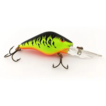 Afgewerkt in een klassiek Fire Tiger-patroon, heeft deze dieplopende plug een levendige chartreuse body geaccentueerd door krachtige zwarte tijgerstrepen en een opvallende oranje keel. Met een gewicht van 14 g (1/2 oz) en een lengte van 5,5 cm (2 1/4") is deze Mann's Bait 30+ Depth Plus (Productcode: 11737) een gespecialiseerd hulpmiddel om doelen diep in de waterkolom te bereiken. Dit exemplaar verkeert in uitstekende staat, met een 5/5 waardering, heldere oranje ogen en een intacte afwerking. De plug is drijvend (floating) en ontworpen voor zowel werpend vissen als trollen, met een maximale duikdiepte van 5 m (16,4 ft). Geproduceerd in de VS, bevat de constructie een massieve heldere duiklip en twee originele dreggen. Dit specifieke model is ontworpen voor een gelijkmatige inhaalbeurt of een stop-and-go actie, wat veelzijdigheid biedt bij het vissen rond onderwaterstructuren.