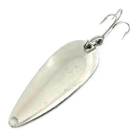 De vernikkeling geeft deze lepel van 5,5 g (3/16 oz) zijn klassieke reflecterende glans, kenmerkend voor het kunstaas dat tussen 1929 en 1979 in Wisconsin werd geproduceerd door de Marathon Bait Company. Met een lengte van precies 4,5 cm (1 3/4") draagt dit exemplaar de iconische "MARATHON" stempel aan de holle zijde, een kenmerk van Amerikaanse productie uit het midden van de eeuw. De hardware is bevestigd met een stevige splitring en een scherpe dreg, waarbij het geheel in een solide 4/5 conditie verkeert met slechts minimale oppervlakkige ouderdomssporen. Het kunstaas, met productcode 7188, heeft een druppelvormig profiel dat is ontworpen voor veelzijdige worpen in verschillende zoetwateromgevingen. Het bevestigingsoog aan de taps toelopende zijde is schoon en klaar voor gebruik, een toonbeeld van de eenvoudige maar effectieve techniek waarmee dit bedrijf vijf decennia lang succesvol was in het hart van de Midwest.