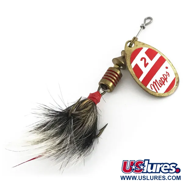 Museumarchief: Mepps Aglia 2 dressed Spinner, Wit/Rood/Messing, 4,7g, Natuurhaar, #8811
