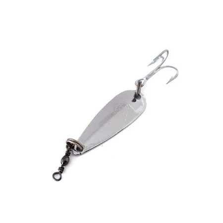 Het 2,5 cm (1") lange lepellichaam schittert met een klassieke nikkelafwerking en vertegenwoordigt het fijne Italiaanse vakmanschap dat verbonden is aan het merk Panther Martin. De druppelvorm heeft een glad, gepolijst oppervlak — trouw aan de naam "Liscio" — om de schittering in verschillende lichtomstandigheden te maximaliseren. Geproduceerd in Italië en geïdentificeerd door productcode 12238, is het kunstaas uitgerust met een stevige splitring en een scherpe dreg. Een vooraf geïnstalleerde tonwartel aan de kop helpt bij het lijnbeheer tijdens het werpen en binnenvissen. Met een gewicht van slechts 1,5 g (3/64 oz) is de Svizzero Liscio gereedschap voor de ultralichte forelspecialist. Dit specifieke exemplaar is ongebruikt en behoudt zijn originele fabrieksglans over het gehele metalen oppervlak en de hardware.