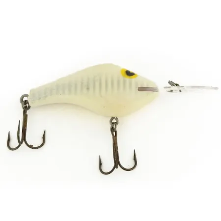 Met de hand gesneden uit eersteklas cederhout, toont dit exemplaar het klassieke vakmanschap waar het in Californië gevestigde merk Poe's om bekend staat. Het lichaam heeft een wit-grijs patroon, gekenmerkt door subtiele verticale grijze strepen over een crème basis, geaccentueerd door opvallende gele ogen met een zwarte "pac-man" stijl pupil. Met een gewicht van 21 g (3/4 oz) en een lengte van 8 cm (3 1/4"), is deze Poe's Super Cedar (productcode 9721) een stevige plug die gebouwd is voor diepte. Een grote, heldere plastic duiklip is stevig in de neus geïntegreerd, voorzien van de naam van de fabrikant en een stevig oog voor de lijn. Het beslag omvat twee dreggen bevestigd via sterke splitringen, waarbij alle metalen onderdelen een schoon uiterlijk behouden. Qua conditie scoort het kunstaas een 4/5, met slechts lichte gebruikssporen terwijl de integriteit van het originele cederhout behouden is gebleven. Vervaardigd in de VS, was dit kunstaas favoriet bij vissers vanwege het specifieke drijfvermogen en de natuurlijke resonantie die alleen hout kan bieden.