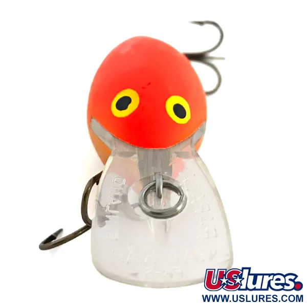 Vervaardigd in Finland, is het 5 cm (2") balsa profiel van deze dieploper ontworpen om dieptes van 2 tot 4,5 m (6,5 - 14,8 ft) te bereiken. De mat oranje afwerking van deze Rapala Fat Rap, herkenbaar aan productcode 6753, wordt geaccentueerd door grote geel en zwart geschilderde ogen op de kop. Dit exemplaar heeft een conditiescore van 3/5, met name een klein deukje en een lichte barst in de buitenste laklaag nabij de staartdreg. De heldere, verlengde kunststof lip is gebouwd voor het werpen of trollen op soorten zoals snoek, snoekbaars en zalm. Met een gewicht van 8,8 g (1/3 oz) behoudt het kunstaas zijn originele buik- en staartdreggen, die wat ouderdomsverschijnselen vertonen door hun verleden in een tacklebox. Dit Finse 5 cm model vertegenwoordigt een klassiek tijdperk van Rapala's dieplopende kunstaasontwerpen.