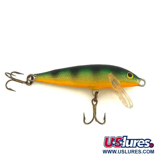 Voorzien van een levendige FT Fire Tiger afwerking, toont deze 5 cm (2") minnow het klassieke vakmanschap van een balsa houten Rapala. Afkomstig uit Finland, beschikt de Rapala Original Floater F5, gecatalogiseerd onder productcode 7812, over een handmatig afgesteld ontwerp bedoeld voor dieptes tussen 0,6 en 1,8 m (2ft-6ft). Het lichaam vertoont een zorgvuldig verloop van oranje op de buik naar een gespikkelde groene rug met donkere verticale strepen, een kleurenschema dat een vaste waarde blijft voor zoetwaterrovers. Met een vedergewicht van 2,3 g (3/32 oz) zorgt de balsa constructie voor het nodige drijfvermogen voor diverse presentaties, zowel bij het werpen als trollen. De heldere, stevige duiklip is gecombineerd met twee scherpe, bronskleurige dreg-haken gemonteerd op originele splitringen. Dit exemplaar verkeert in uitstekende staat en verdient een 5/5 waardering voor zijn schone afwerking en goed bewaard gebleven geschilderde ogen. Elk detail, van de kenmerkende balsa textuur tot de nauwkeurige plaatsing van het beslag, grijpt terug op de erfenis van Lauri Rapala.