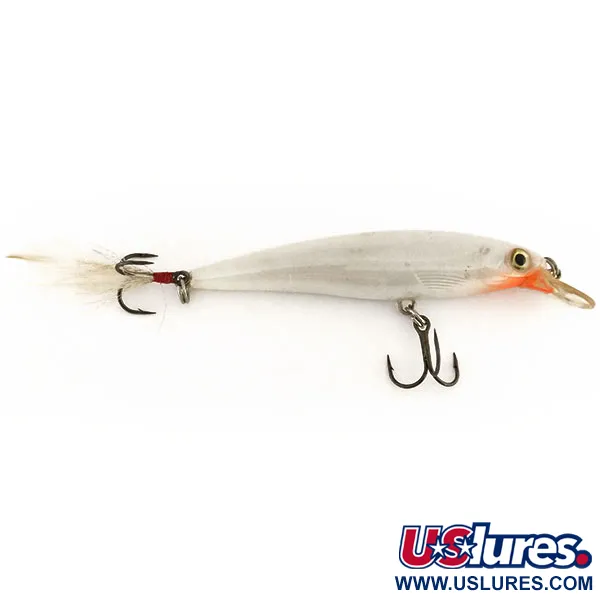 Dit slanke model van de Rapala X-RAP Sureset meet 11 cm (4 1/4") en is afgewerkt in een helder wit-op-zilver schema. Dit uit Ierland afkomstige exemplaar heeft een conditiescore van 5/5 en is uitzonderlijk goed bewaard gebleven zonder zichtbare slijtage. Een subtiel oranje accent bevindt zich op de keel, net achter de heldere plastic zwemlip, wat een klassiek mikpunt vormt voor roofvissen zoals baars, snoekbaars of snoek. De hardware valt op door de gevederde achterste dreg, die een duidelijke textuur toevoegt aan de achterkant van het kunstaas. Met een gewicht van 12,5 g (2/5 oz) is het kunstaas ontworpen voor een diepte van 0,6 - 1,2 m (2 ft - 4 ft). Dit model, met productcode 9540, is ontwikkeld voor technieken zoals stop & go, jerking, binnenvissen, twitching en trollen. De goudgerande 3D-ogen sind goed uitgelijnd en maken het profiel van een prooivis compleet, kenmerkend voor deze specifieke Ierse productie.
