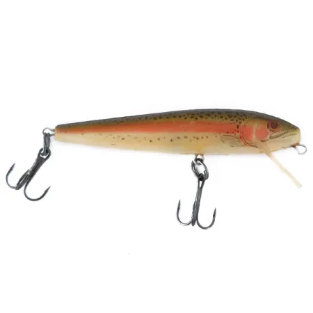 Met een gewicht van 1/8oz (4g) toont deze in Amerika gemaakte minnow de gedetailleerde afwerking waar Rebel in hun vroege jaren beroemd om werd. Het kunstaas met productcode 11085 heeft een realistisch Rainbow Trout-patroon over een Ghost-basis, wat zorgt voor een subtiele doorschijnendheid. De kunststof body van 2 3/4" (7cm) is uitgerust met twee scherpe dreggen die zijn bevestigd met stevige splitringen. De geïntegreerde heldere duiklip is ontworpen om dieptes tussen 0,9-1,8m (3-6ft) te bereiken, waardoor het een veelzijdige keuze is voor zowel werpend vissen als trollen. Dit exemplaar verkeert in 5/5 conditie, met een goed bewaard gebleven hardware en fijne spikkels op de flanken. Vissers hebben met deze drijvende plug meestal succes bij een gestage inhaalbeweging of een klassieke stop-and-go cadans.