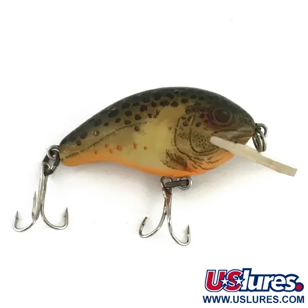 Met een gewicht van slechts 3/16oz (6g) is deze in Amerika gemaakte crankbait een voorbeeld van de precisie die Rebel bereikte met hun kleinere kunstaasprofielen. De Teeny R, herkenbaar aan productcode 7389, is voorzien van een zeer gedetailleerd beekforelpatroon, compleet met donkere spikkels op de olijfkleurige rug en een warme oranje overgang bij de buik. Het kunstaas is precies 1 1/2" (4 cm) lang, voorzien van originele dregjes met zilveren afwerking en verkeert in 5/5 conditie. De transparante duiklip met de klassieke merknaam in reliëf is ontworpen voor dieptes tussen 0,4 - 1,2 m (1.3-4ft), waardoor het een veelzijdig hulpmiddel is voor zowel werpen als trollen in ondieper water. Als suspending model blijft het op zijn positie in de waterkolom wanneer het binnenvissen wordt gepauzeerd. Dit specifieke exemplaar benadrukt de kwaliteit van de in de VS gevestigde productie van Rebel, met een strakke afwerking en goed bewaard gebleven hardware.