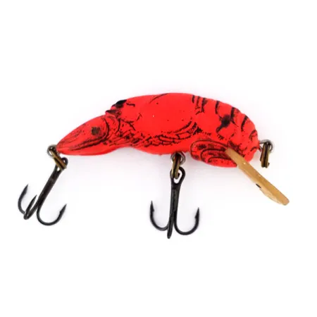 Vuurrode tinten kenmerken de matte afwerking van dit gespecialiseerde UV-reactieve exemplaar, dat is ontworpen om te fluoresceren in dieper of troebel water. Deze Rebel Wee-Crawfish, bekend onder productcode 11041, heeft een compact profiel van 1 1/2" (4 cm) en een gewicht van 3/32 oz (2,5 g). Het drijvende lichaam is ontworpen om dieptes van 0,5 tot 1,5 m te bereiken bij het binnenvissen, waardoor de middelste dieptezones effectief worden bestreken. Het is voorzien van een gedetailleerde zwarte print die de anatomie van een rivierkreeft nabootst, gecombineerd met een transparante duiklip en zwart dregmateriaal. Het kunstaas verkeert in een 5/5 conditie en vertoont geen tekenen van gebruik of slijtage op het levendige fluorescerende oppervlak. Dit model is vervaardigd in de VS en is bedoeld voor het werpen of trollen op soorten zoals baars en snoek.